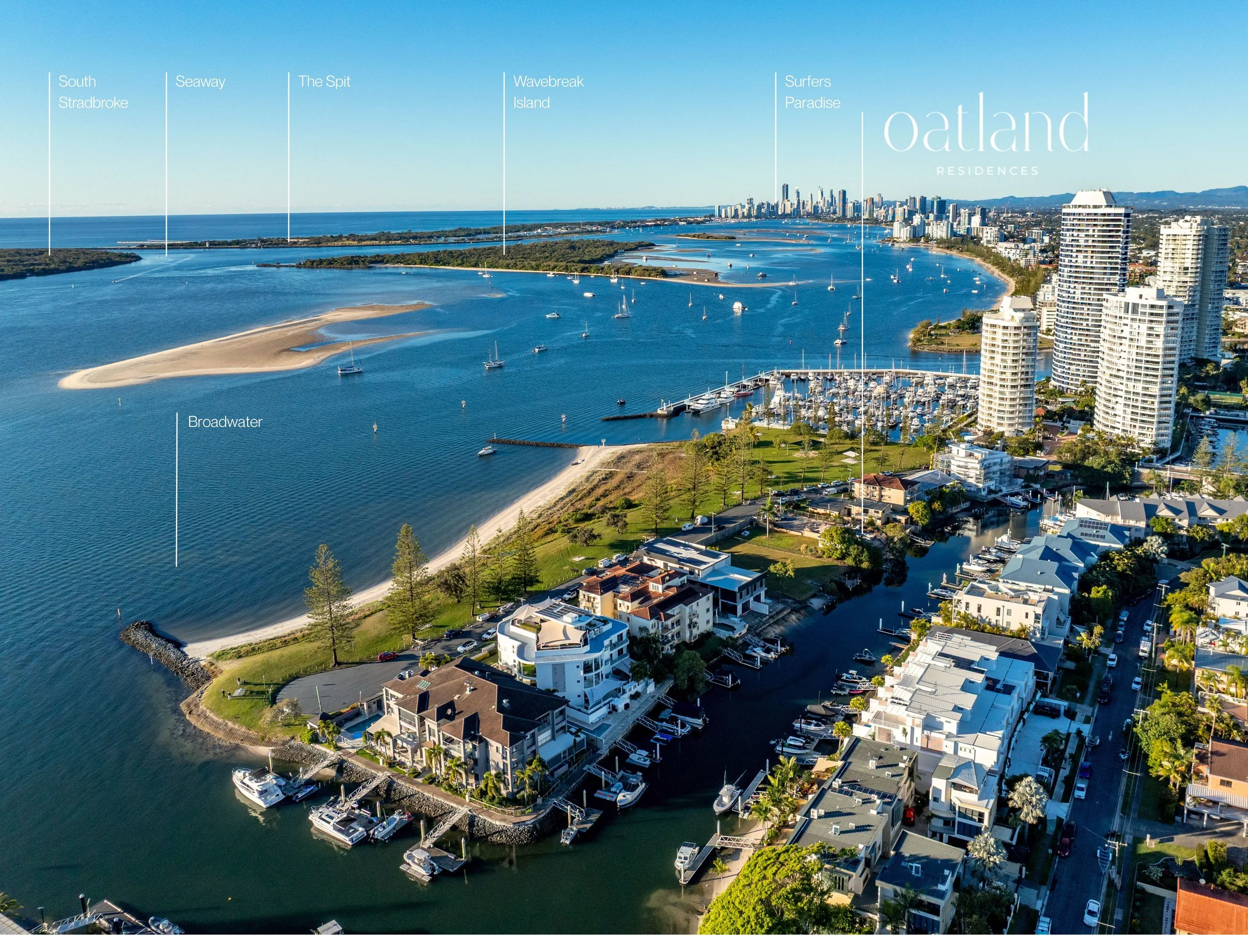 These homes don’t simply overlook the water - they embrace it. With an expansive beachfront park and sandy beach directly adjacent, and the ocean as your backyard with direct boating access to the Broadwater, Oatland Residences invites you to live a lifestyle without compromise.